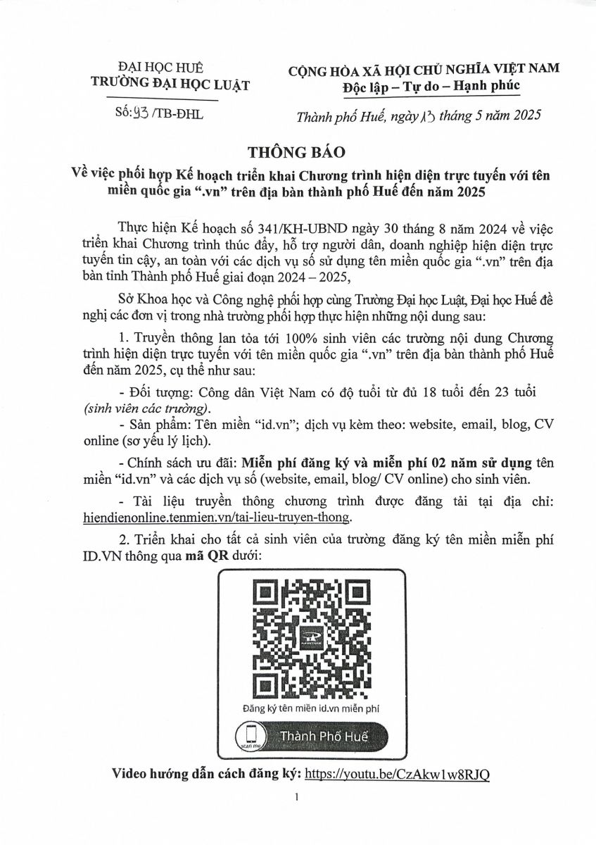 Chương trình hiện diện trực tuyến với tên miền quốc gia “.vn” trên địa bàn thành phố Huế đến năm 2025