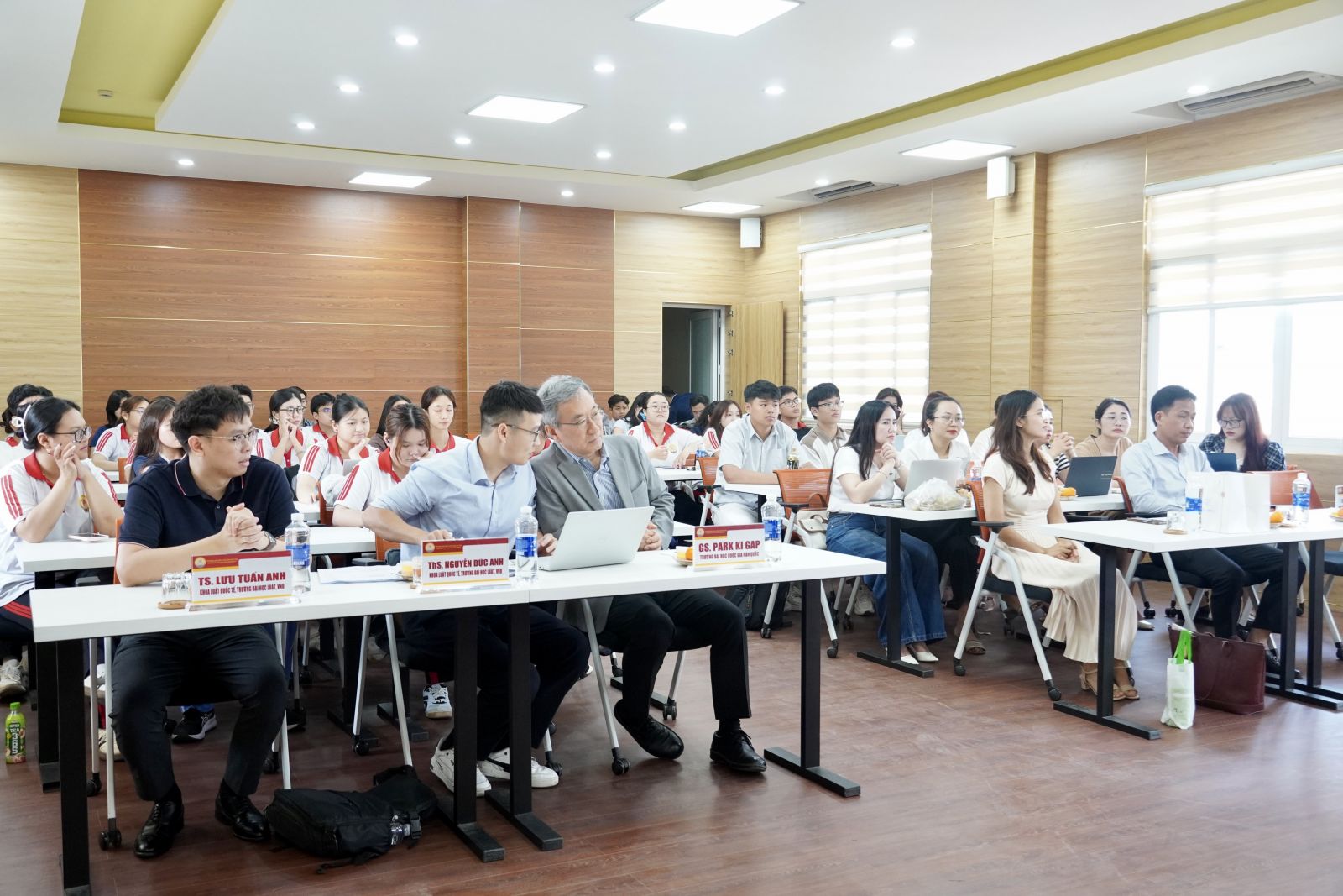 Không khí trao đổi học thuật diễn ra sôi nổi với nhiều câu hỏi, ý kiến từ giảng viên và sinh viên. Các nội dung thảo luận đã góp phần làm rõ những khó khăn, vướng mắc, đồng thời chỉ ra xu hướng vận dụng linh hoạt các nguồn luật trong bối cảnh toàn cầu hóa và hội nhập quốc tế ngày càng sâu rộng.