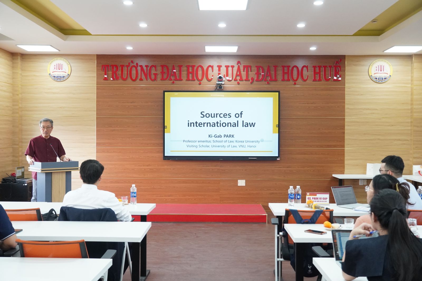 Giáo sư Park Ki Gab trao đổi về nguồn luật quốc tế tại toạ đàm học thuật ở Trường Đại học Luật, Đại học Huế