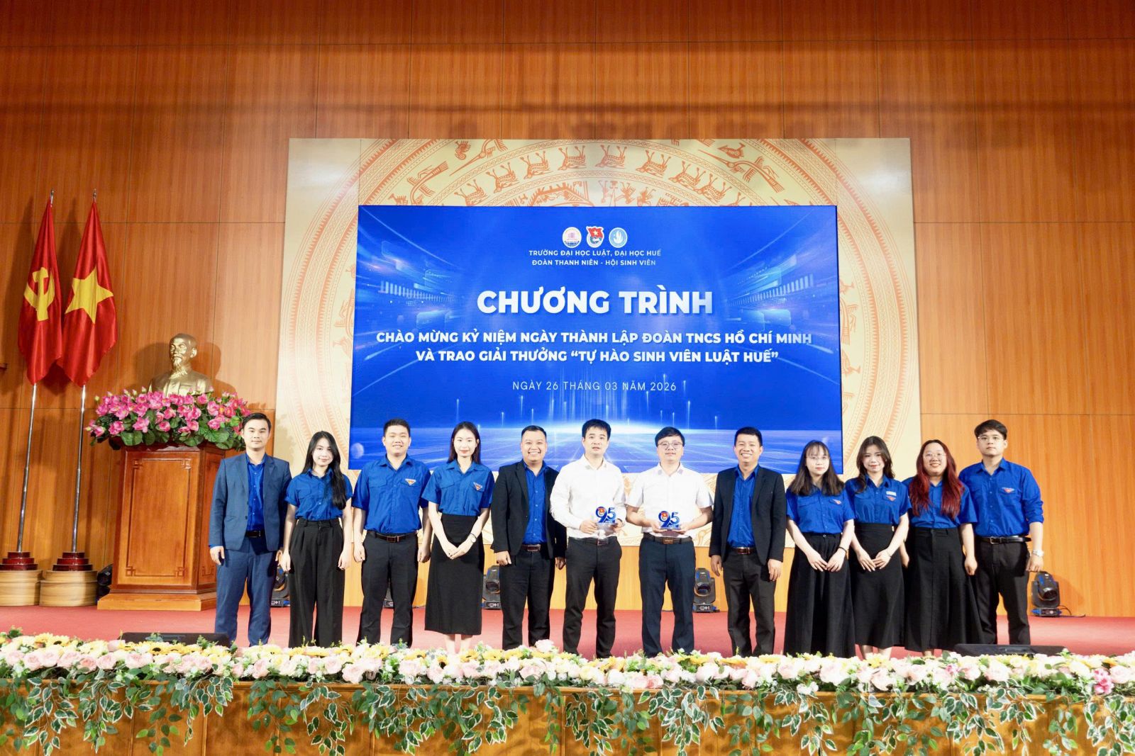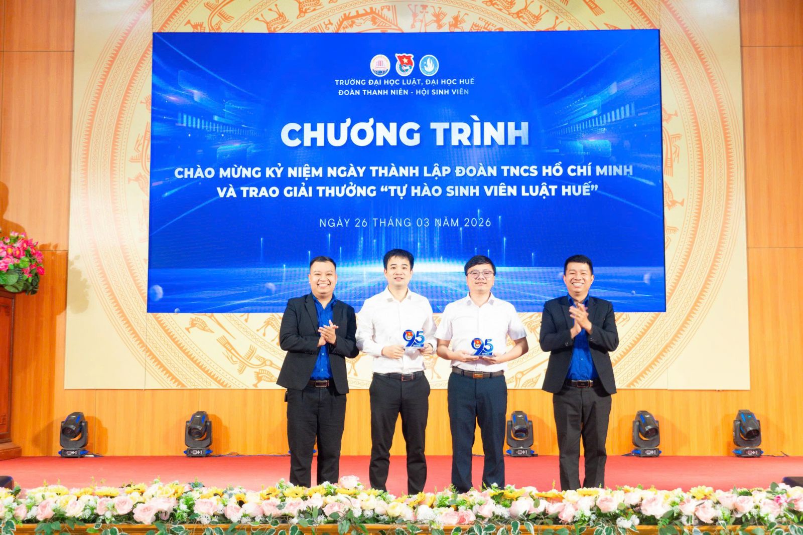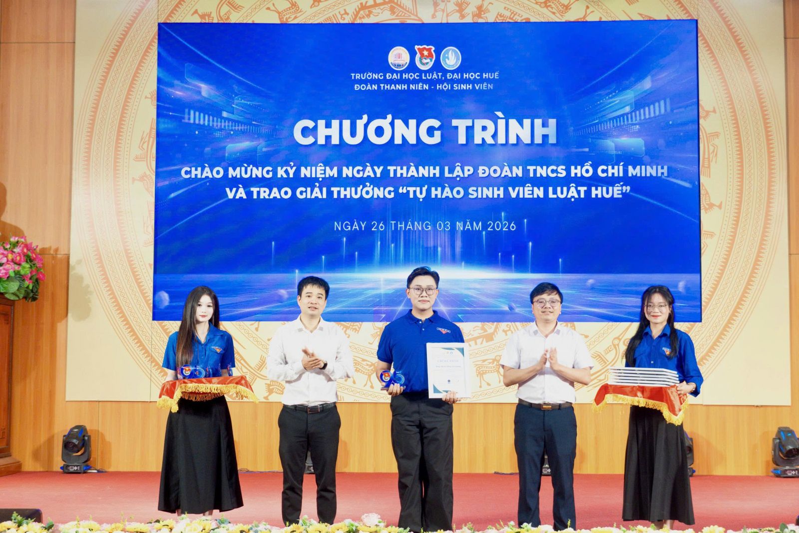 Chiều ngày 26/3/2026, trong không khí sôi nổi của Tháng Thanh niên, Đoàn Thanh niên – Hội Sinh viên Trường Đại học Luật, Đại học Huế long trọng tổ chức Lễ kỷ niệm 95 năm Ngày thành lập Đoàn TNCS Hồ Chí Minh (26/3/1931 – 26/3/2026) và trao giải thưởng “Tự hào sinh viên Luật Huế”. Đây là dịp để ôn lại hành trình vẻ vang của tuổi trẻ Việt Nam, là ngọn lửa lý tưởng được tiếp nối qua nhiều thế hệ; đồng thời tiếp tục khẳng định bản lĩnh, trí tuệ và khát vọng cống hiến của tuổi trẻ Trường Đại học Luật, Đại học Huế hôm nay.
