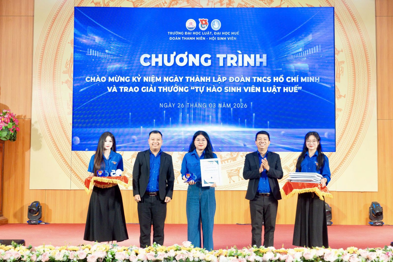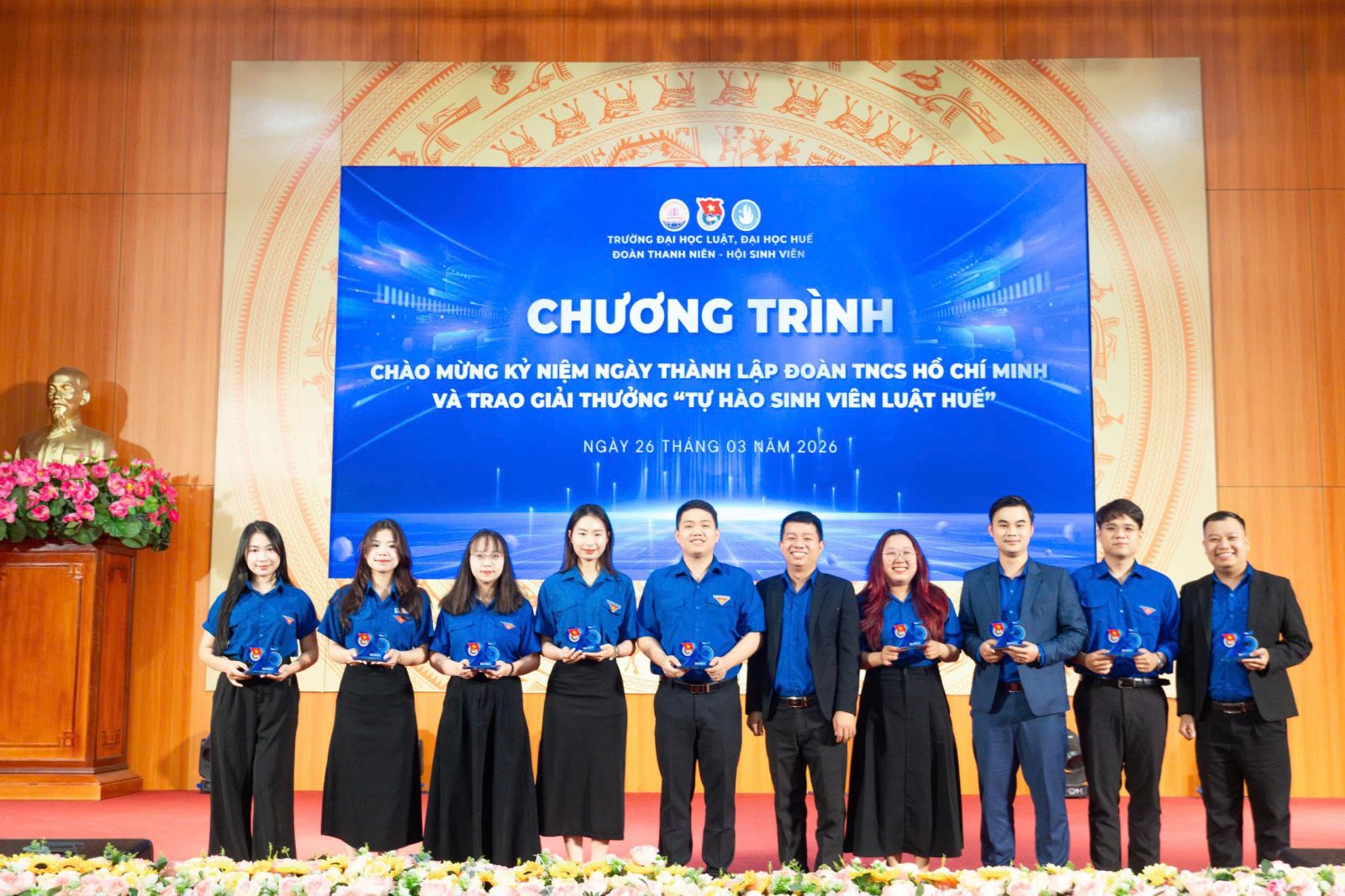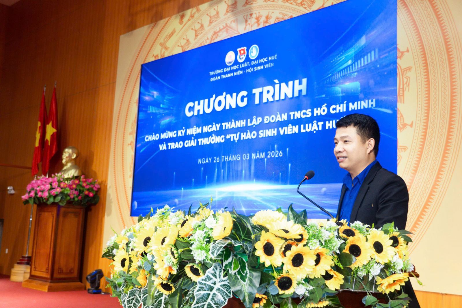 Chiều ngày 26/3/2026, trong không khí sôi nổi của Tháng Thanh niên, Đoàn Thanh niên – Hội Sinh viên Trường Đại học Luật, Đại học Huế long trọng tổ chức Lễ kỷ niệm 95 năm Ngày thành lập Đoàn TNCS Hồ Chí Minh (26/3/1931 – 26/3/2026) và trao giải thưởng “Tự hào sinh viên Luật Huế”. Đây là dịp để ôn lại hành trình vẻ vang của tuổi trẻ Việt Nam, là ngọn lửa lý tưởng được tiếp nối qua nhiều thế hệ; đồng thời tiếp tục khẳng định bản lĩnh, trí tuệ và khát vọng cống hiến của tuổi trẻ Trường Đại học Luật, Đại học Huế hôm nay.