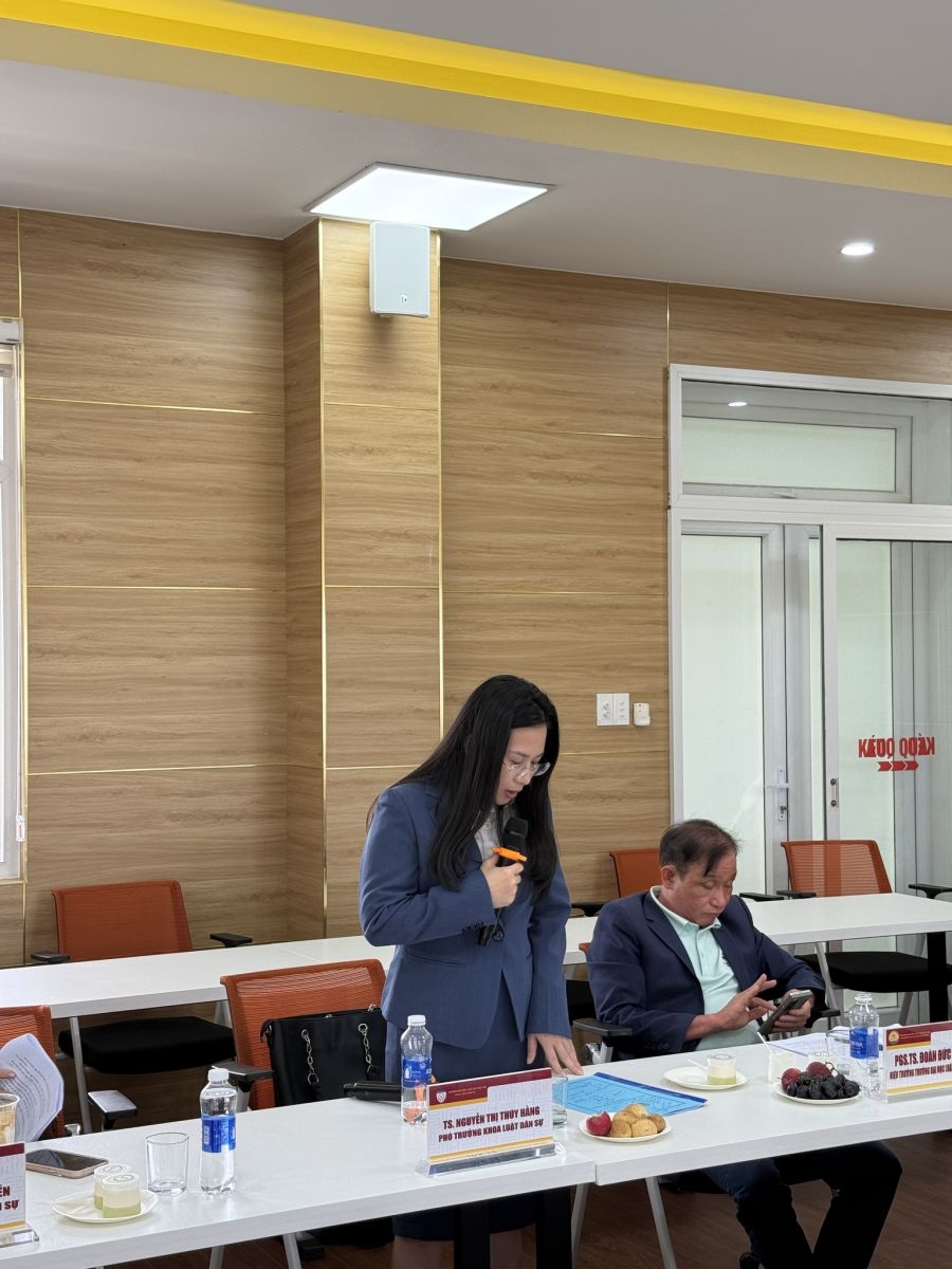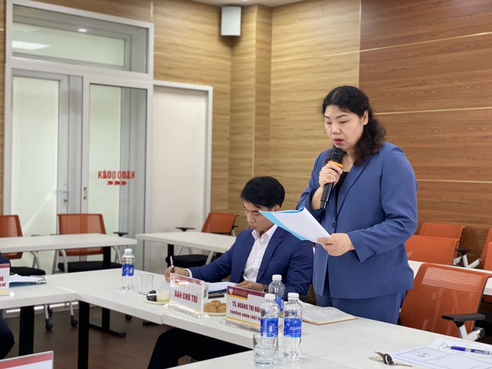 TS. Hoàng Thị Hải Yến, Trưởng Khoa luật Dân sự trình bày báo cáo trước hội nghị