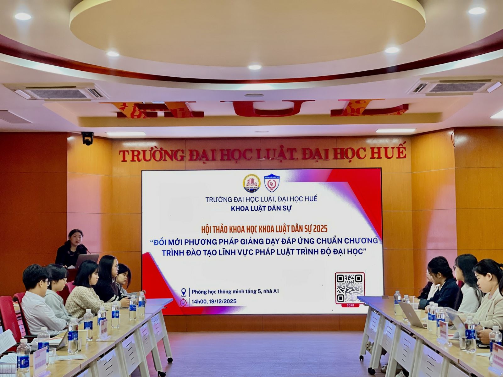 Ngày cập nhật: 25-12-2025Vào ngày 19/12/2025, tại Phòng học thông minh,, Khoa Luật Dân sự - Trường Đại học Luật, Đại học Huế đã tổ chức thành công Hội thảo khoa học với chủ đề: “Đổi mới phương pháp giảng dạy đáp ứng chuẩn chương trình đào tạo lĩnh vực pháp luật trình độ Đại học”.