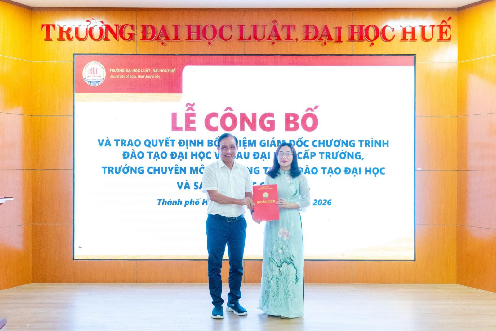 LỄ CÔNG BỐ VÀ TRAO QUYẾT ĐỊNH BỔ NHIỆM GIÁM ĐỐC CHƯƠNG TRÌNH ĐÀO TẠO ĐẠI HỌC VÀ SAU ĐẠI HỌC CẤP TRƯỜNG; TRƯỞNG CHUYÊN MÔN CHƯƠNG TRÌNH ĐÀO TẠO ĐẠI HỌC VÀ SAU ĐẠI HỌC CẤP KHOA TRƯỜNG ĐẠI HỌC LUẬT, ĐẠI HỌC HUẾ