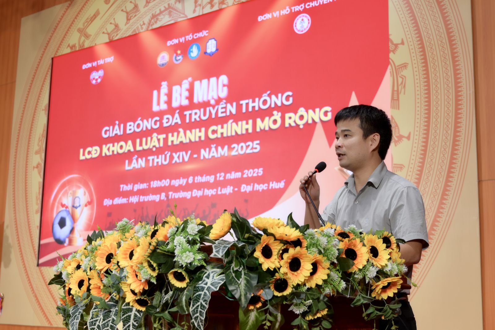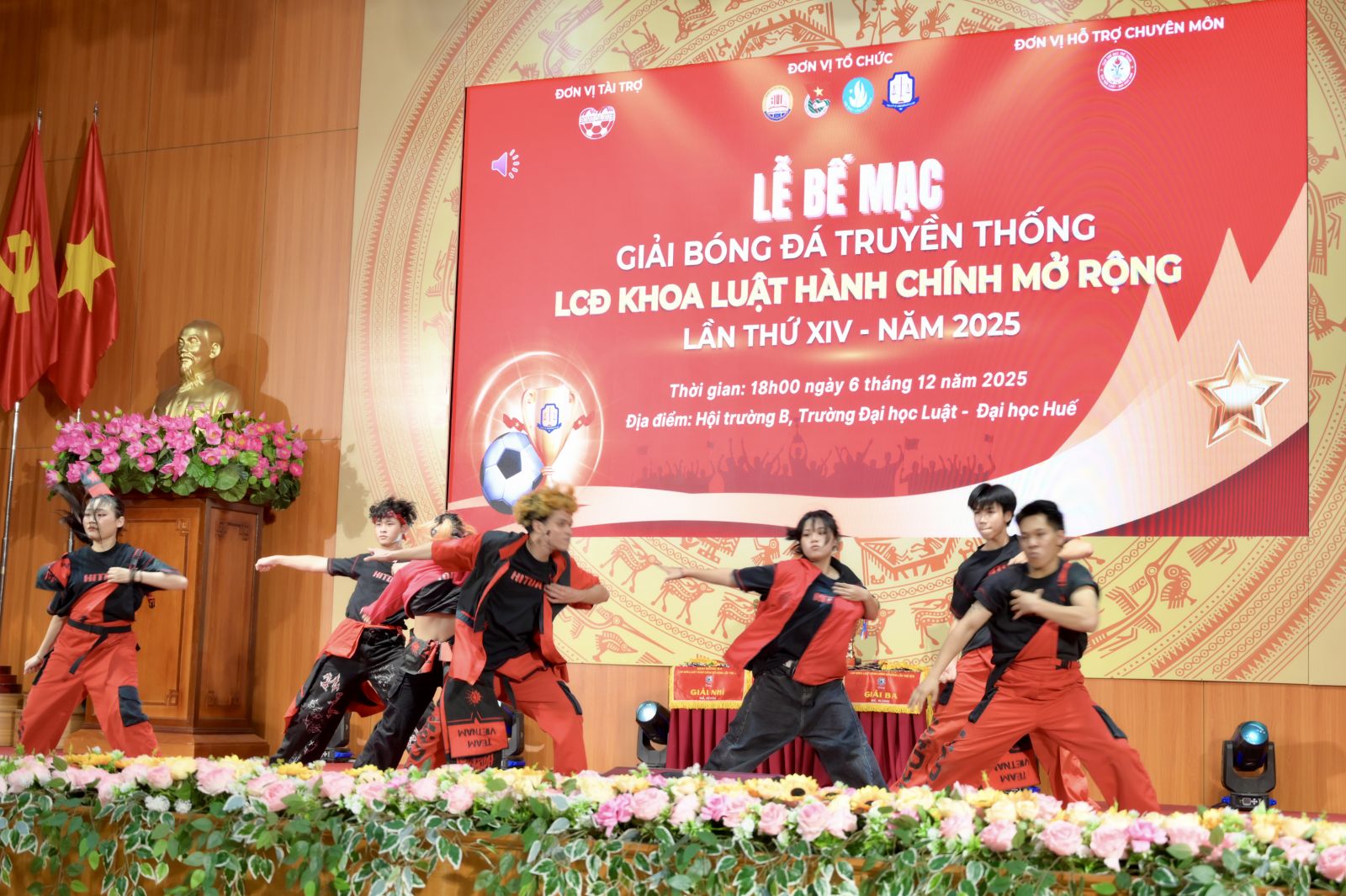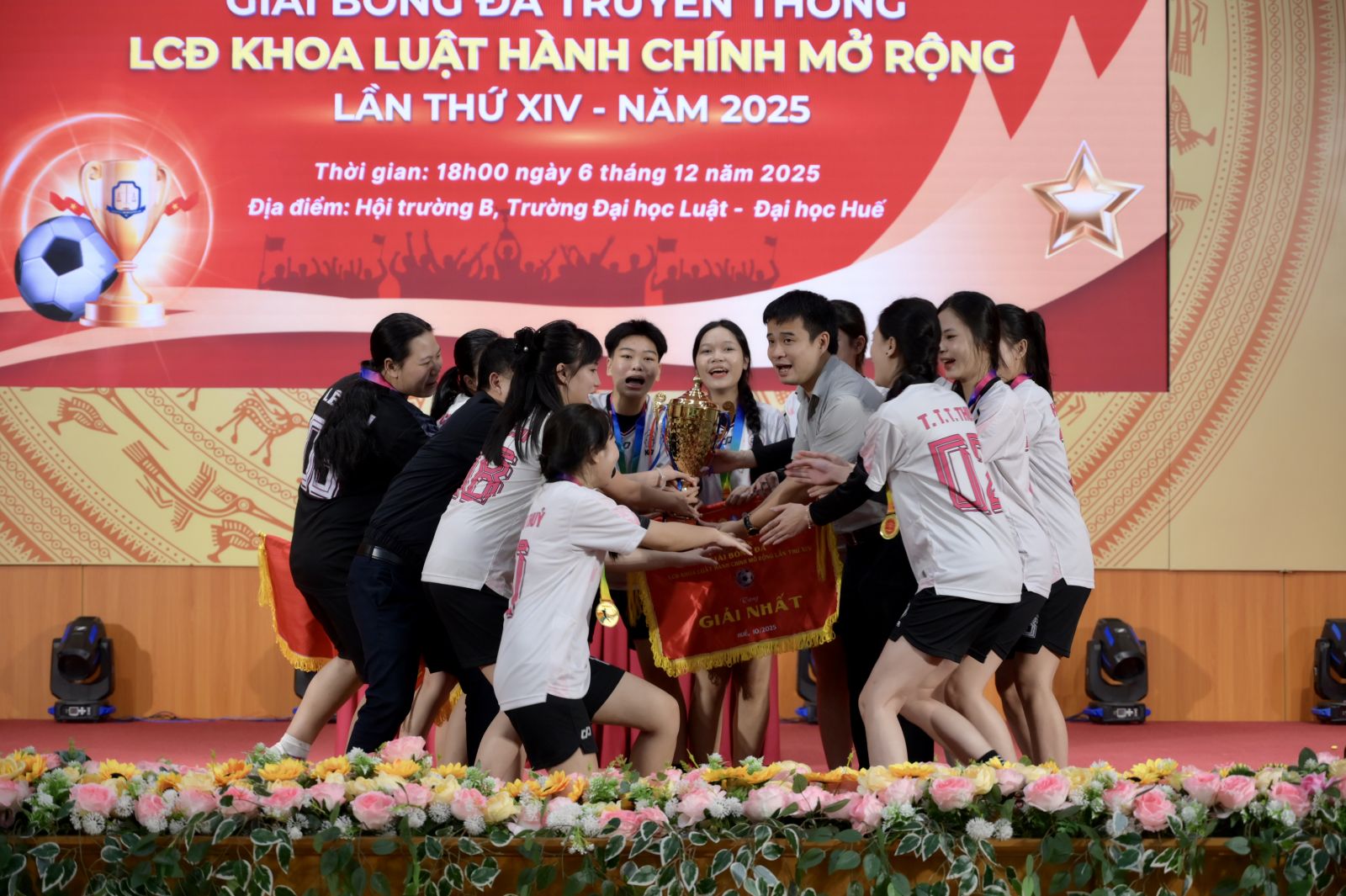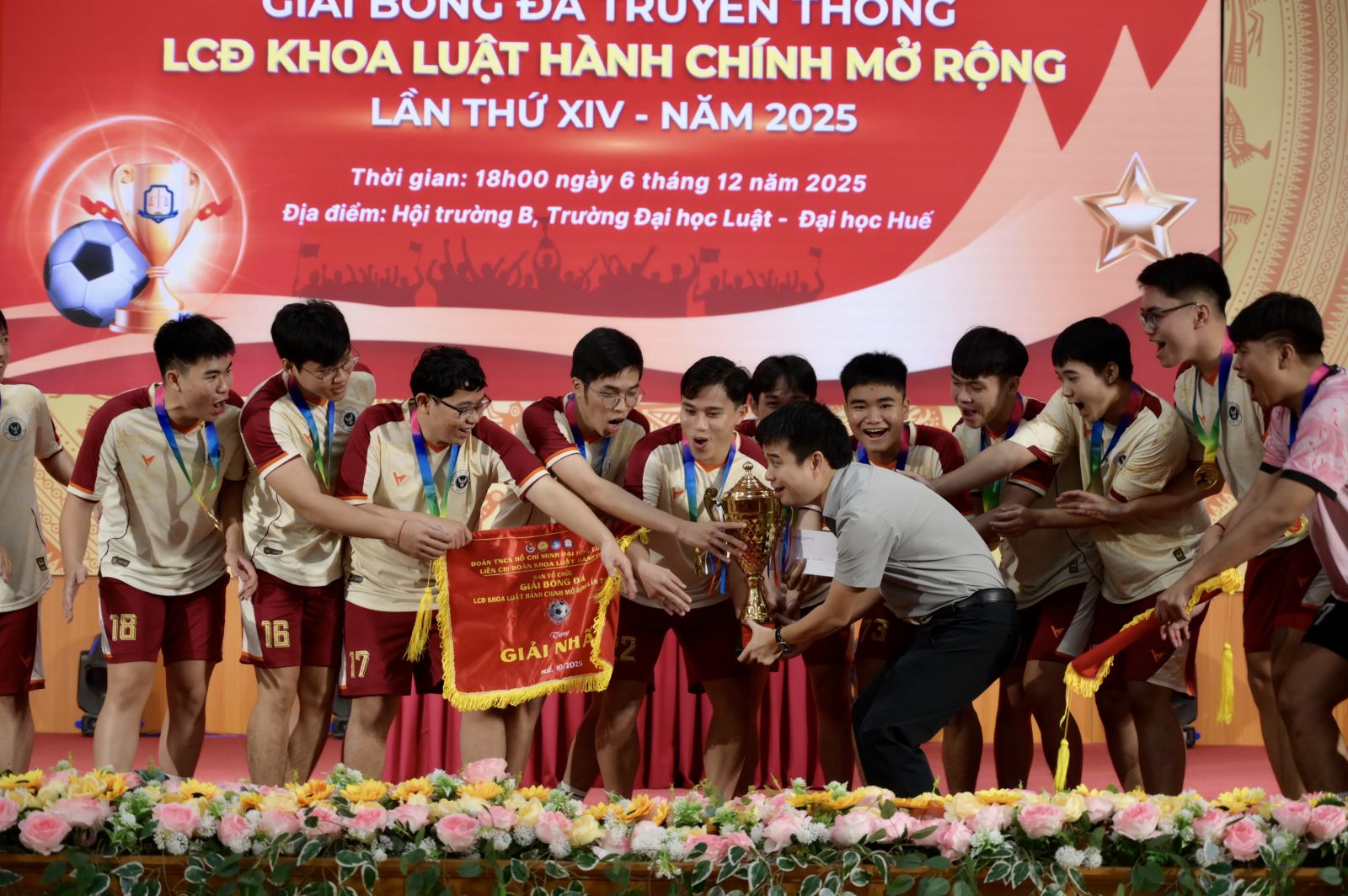 Vào lúc 18h00 ngày 06/12/2025, tại Hội trường B - Trường Đại học Luật, Đại học Huế đã diễn ra Lễ bế mạc Giải bóng đá Truyền thống LCĐ Khoa Luật Hành chính mở rộng lần thứ XIV – Năm 2025, khép lại một mùa giải bùng nổ cảm xúc và đầy dấu ấn.