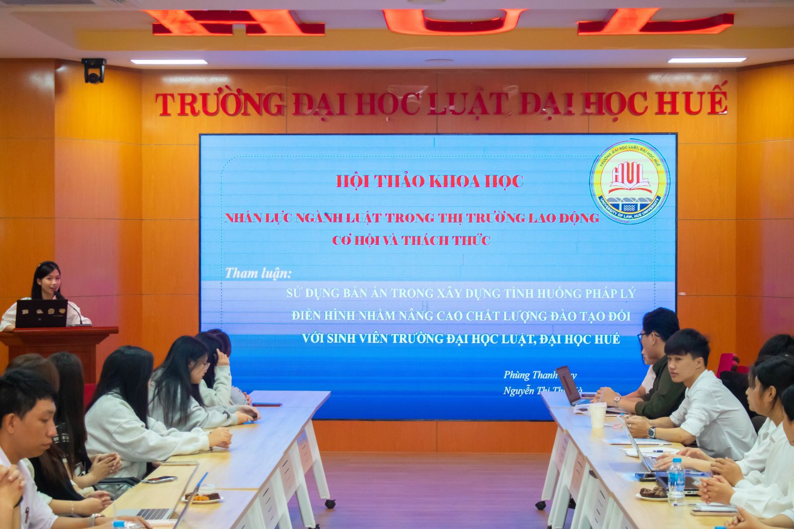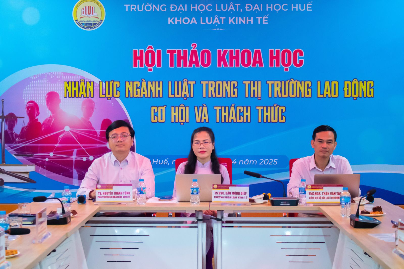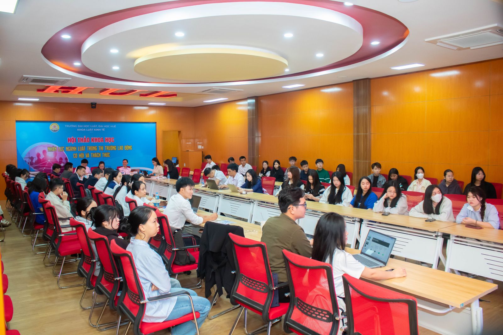 Vào lúc 08h00 ngày 09 tháng 04 năm 2025 tại Phòng học thông minh tầng 5, Nhà A1, Trường Đại học Luật, Đại học Huế đã tổ chức thành công Hội thảo khoa học cấp khoa với chủ “Nhân lực ngành luật trong thị trường lao động - Cơ hội và thách thức”. Hội thảo là diễn đàn học thuật thiết thực, kết nối sinh viên với các giảng viên, chuyên gia pháp lý và nhà tuyển dụng, qua đó làm rõ thực trạng, yêu cầu và định hướng phát triển nguồn nhân lực ngành luật trong bối cảnh chuyển đổi số và hội nhập thị trường lao động hiện nay.