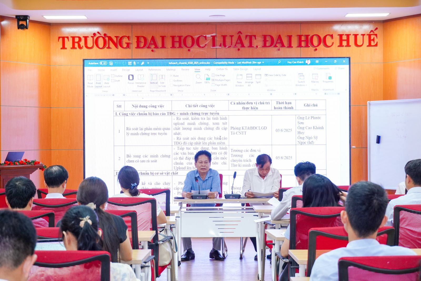 Tại cuộc họp, các nhóm chuyên trách đã thảo luận và thống nhất phân công nhiệm vụ cụ thể cho từng đơn vị, cá nhân trong việc hoàn thiện báo cáo tự đánh giá; tập hợp minh chứng bản mềm và upload đầy đủ lên phần mềm quản lý minh chứng để thuận tiện cho các chuyên gia kiểm tra trực tuyến; đồng thời chuẩn bị cơ sở vật chất, trang thiết bị phục vụ cho đợt khảo sát sơ bộ trực tuyến vào ngày 6/6/2025 Sau đợt khảo sát sơ bộ sẽ là cơ sở để đoàn chuyên gia thực hiện đánh giá ngoài trực tiếp hai CTĐT thạc sĩ và tiến sĩ ngành Luật Kinh tế tại Trường sắp tới vào ngày 18-21/6/2025.