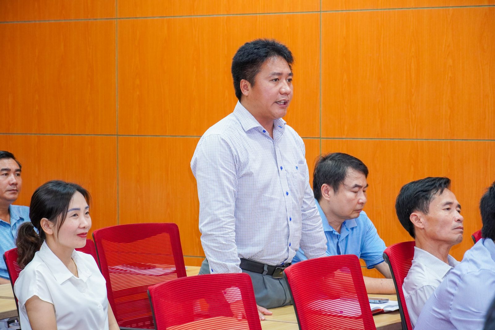 Cuộc họp do PGS.TS. Đoàn Đức Lương, Bí thư Đảng ủy, Hiệu trưởng Nhà trường và PGS.TS. Nguyễn Duy Phương, Phó Bí thư Đảng uỷ, Phó Hiệu trưởng Nhà trường chủ trì với sự tham dự Hội đồng tự đánh giá và Ban Thư kí, các nhóm chuyên trách, các thành viên của tổ minh chứng
