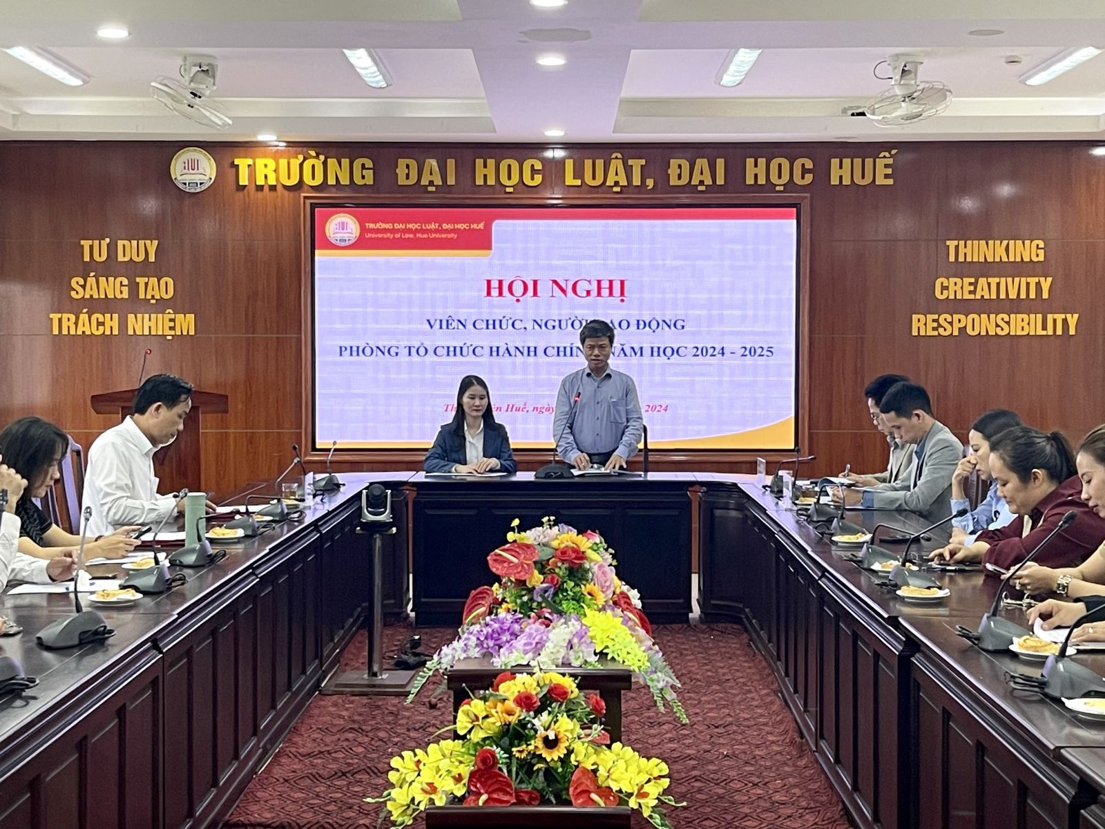 Hội nghị viên chức, người lao động phòng Tổ chức-Hành chính là dịp để đánh giá cũng như ghi nhận cũng nỗ lực trong công việc cũng như hoạt động của Phòng trong năm học 2023-2024. Bên cạnh đó, Hội nghị còn là dịp để toàn thể công chức, người lao động thể hiện quyết tâm thực hiện tốt các chỉ tiêu đã đề ra góp phần hoàn thành xuất sắc nhiệm vụ của phòng Tổ chức-Hành chính cũng như Trường Đại học Luật, Đại học Huế trong năm học 2024-2025.