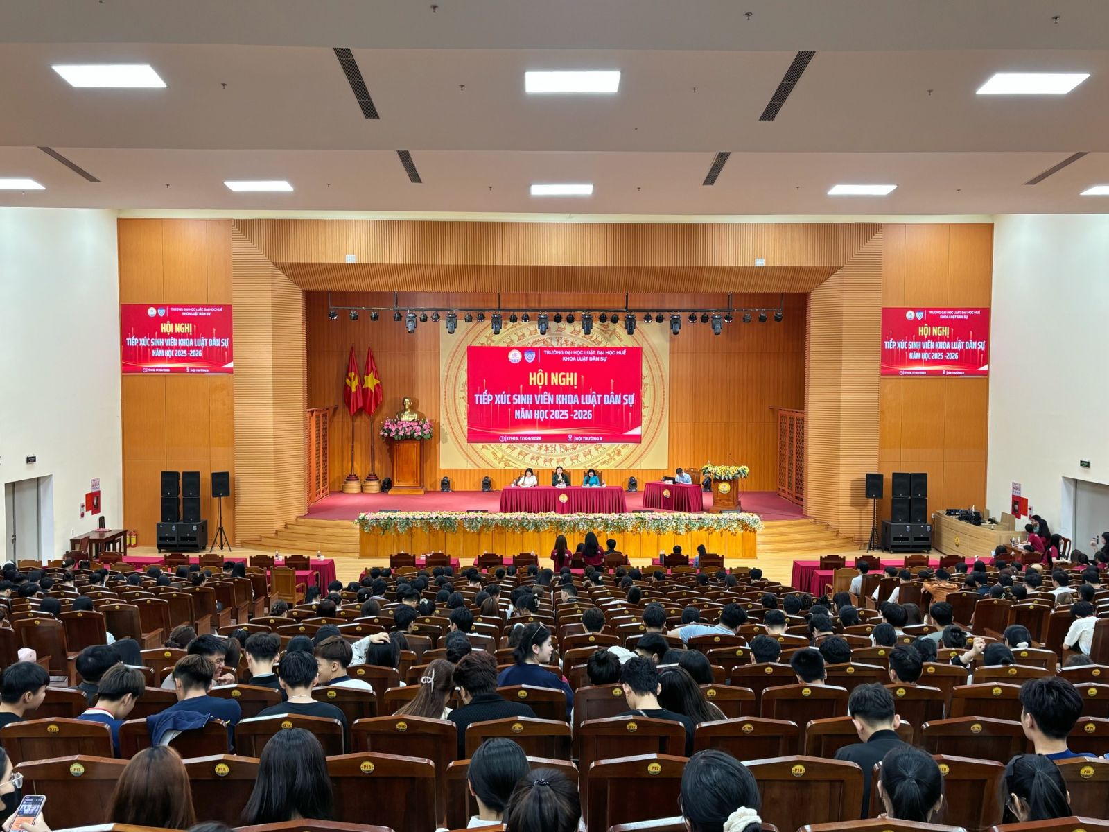 Ngày cập nhật: 17-04-2026Vào lúc 17h15 ngày 17/4/2026 tại Hội trường B, Trường Đại học Luật, Đại học Huế, Khoa luật Dân sự đã tổ chức thành công Hội nghị tiếp xúc sinh viên Khoa luật Dân sự năm học 2025 - 2026. Đây là hoạt động thường niên giúp kết nối sinh viên và đội ngũ giảng viên Khoa luật Dân sự. Thông qua đối thoại trực tiếp, Khoa có thể lắng nghe và giải đáp kịp thời những vướng mắc của các bạn sinh viên trong quá trình học tập, rèn luyện cũng như công tác phát triển Đảng và đào tạo. Hội nghị không chỉ là nơi nắm bắt tâm tư, nguyện vọng mà còn là cơ sở để Khoa đưa ra những giải pháp hỗ trợ người học một cách thiết thực và hiệu quả nhất.